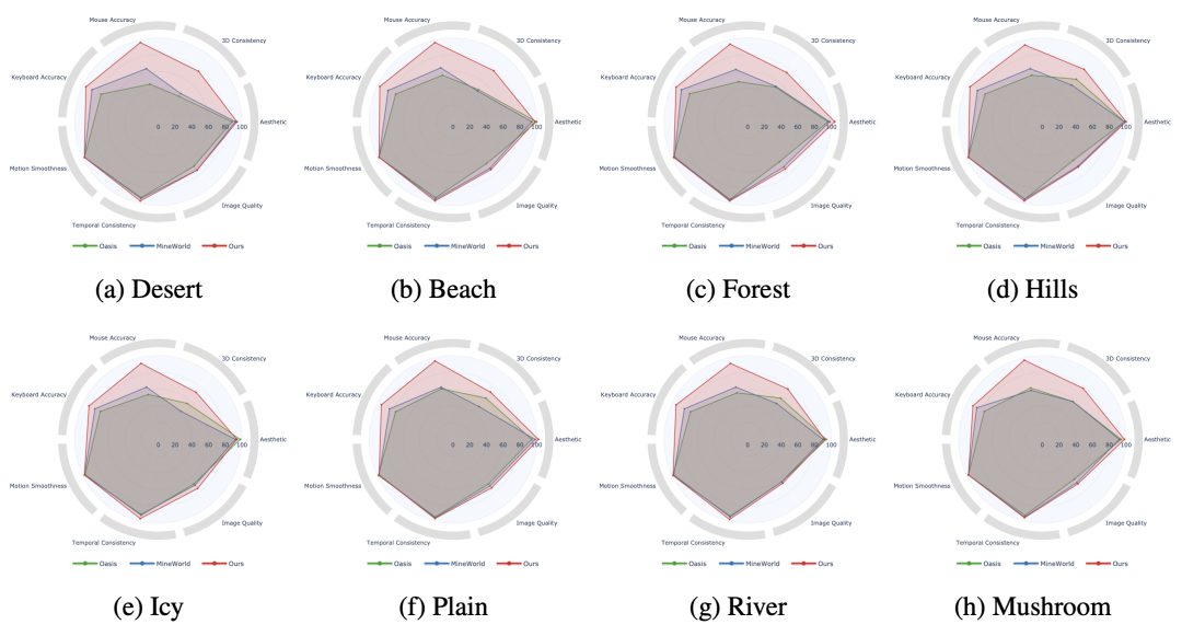 在 8 大典型 Minecraft 场景中全面领先,展现出卓越的环境适应性与泛化能力,可广泛应用于复杂动态的虚拟世界交互任务。