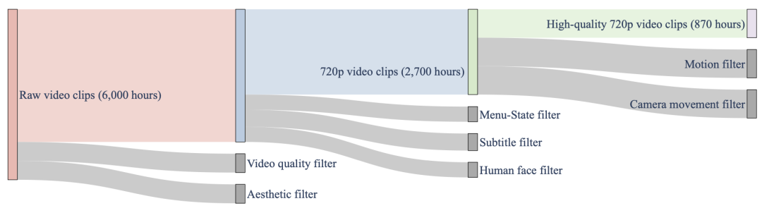 无标签预训练数据集采用三阶段过滤机制从6000小时的MineDojo数据中过滤出近千小时高质量数据: (1) 画质与美学过滤;(2) 非游戏内容剔除;(3) 动态与视角稳定性过滤。