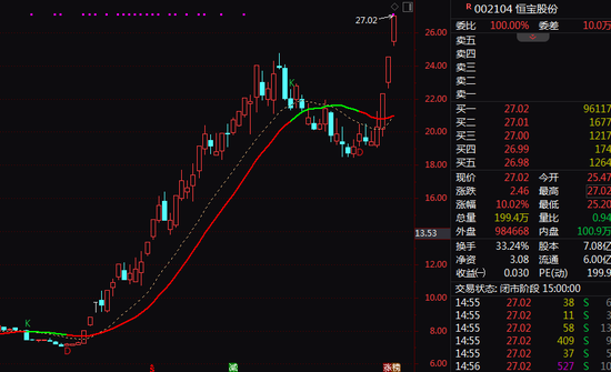 电子身份证板块指数盘中一度放量涨逾3%,创历史新高。恒宝股份(维权)连续3日涨停,股价创10年新高,国投智能、吉大正元、京北方等也纷纷强势涨停或涨超10%。