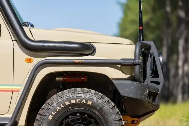 这款车由澳大利亚知名越野装备品牌Maxtrax与专业改装厂Australian Expedition Vehicles (AEV) 联手打造。其创意核心在于:以最新一代(海外在售款)铃木吉姆尼的底盘和动力为基础,进行全方位深度改造,目标是赋予它经典丰田陆地巡洋舰LC79系列的神韵和更强的远征能力。